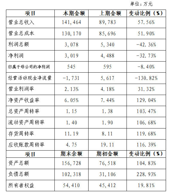 2022年度主要财务指标情况:资产总额15.67亿元,负债总额10.23亿元,所有者权益总额5.44亿元;营业收入14.15亿元,净利润3019万元,归母净利润545万元;资产负债率65.28%。