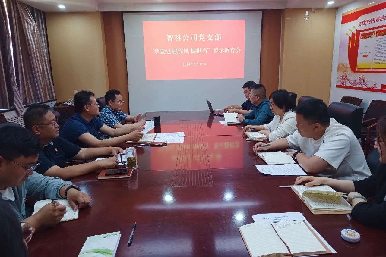 为推动党纪学习教育走深走实,强化党员干部党性观念和纪律意识,着力提升工作质效,5月15日下午,智科农服举办“学党纪 强作风 促担当”警示教育会。公司党支部书记赵红军主持会议,全体党员参加会议。