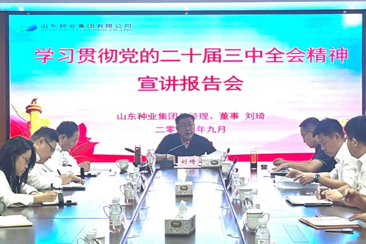 9月24日,山东种业宣讲团成员、山东种业董事、总经理刘琦到青岛公司宣讲党的二十届三中全会精神。青岛公司党总支书记、董事长陈言峰主持宣讲报告会。
